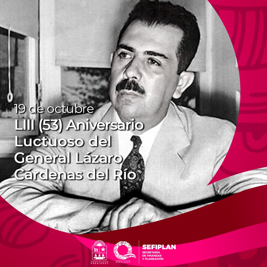 El ilustre patriota michoacano, general Lázaro Cárdenas del Río, falleció el 19 de octubre de 1970, en la Ciudad de México. Fue presidente de México durante el periodo 1934-1940.