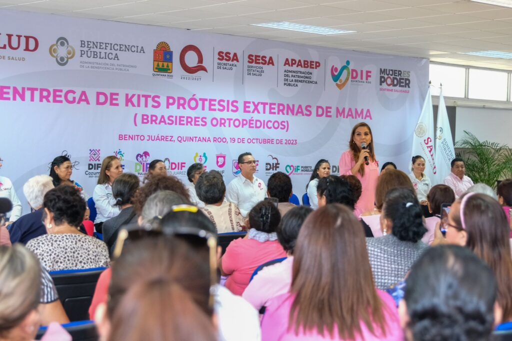 -En el Día Mundial de la Lucha contra el Cáncer de Mama, la gobernadora de Quintana Roo entregó kits de prótesis externas de mama y 728 brasieres ortopédicos