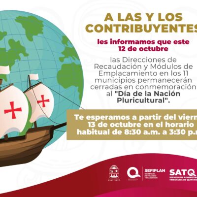 A las y los contribuyentes, les informamos que este jueves 12 de octubre 📅 nuestras oficinas se mantendrán cerradas en