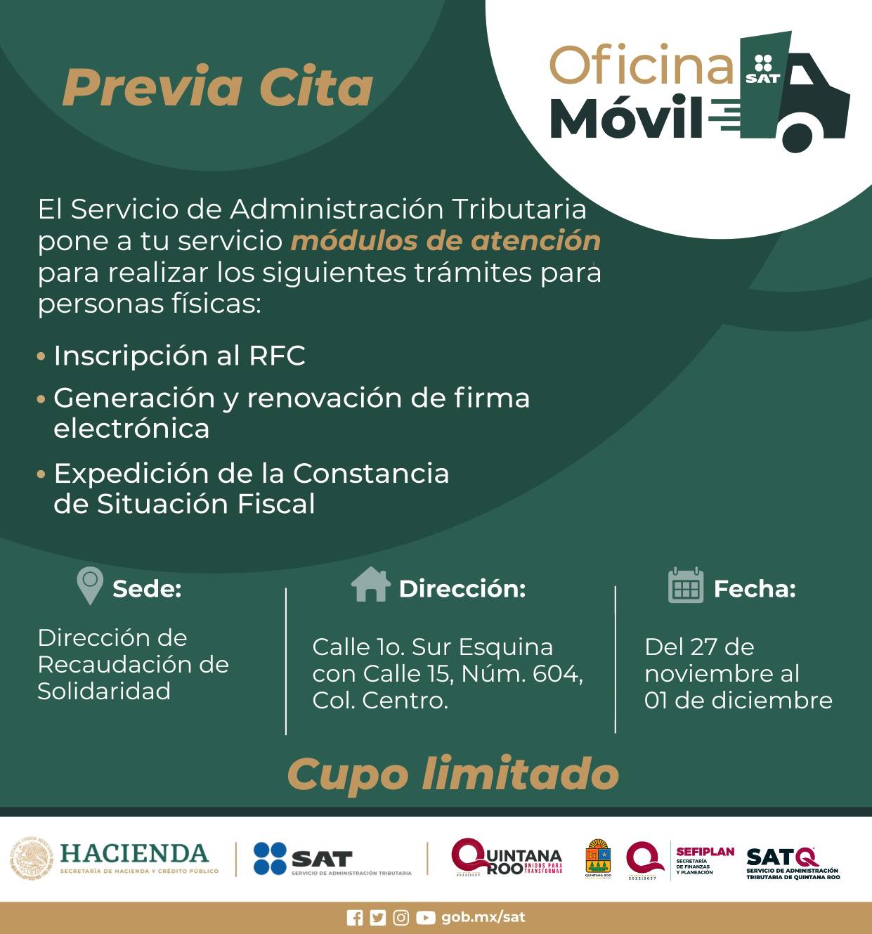 ¡La segunda edición del programa #OficinaMóvilSAT llega a Solidaridad!
