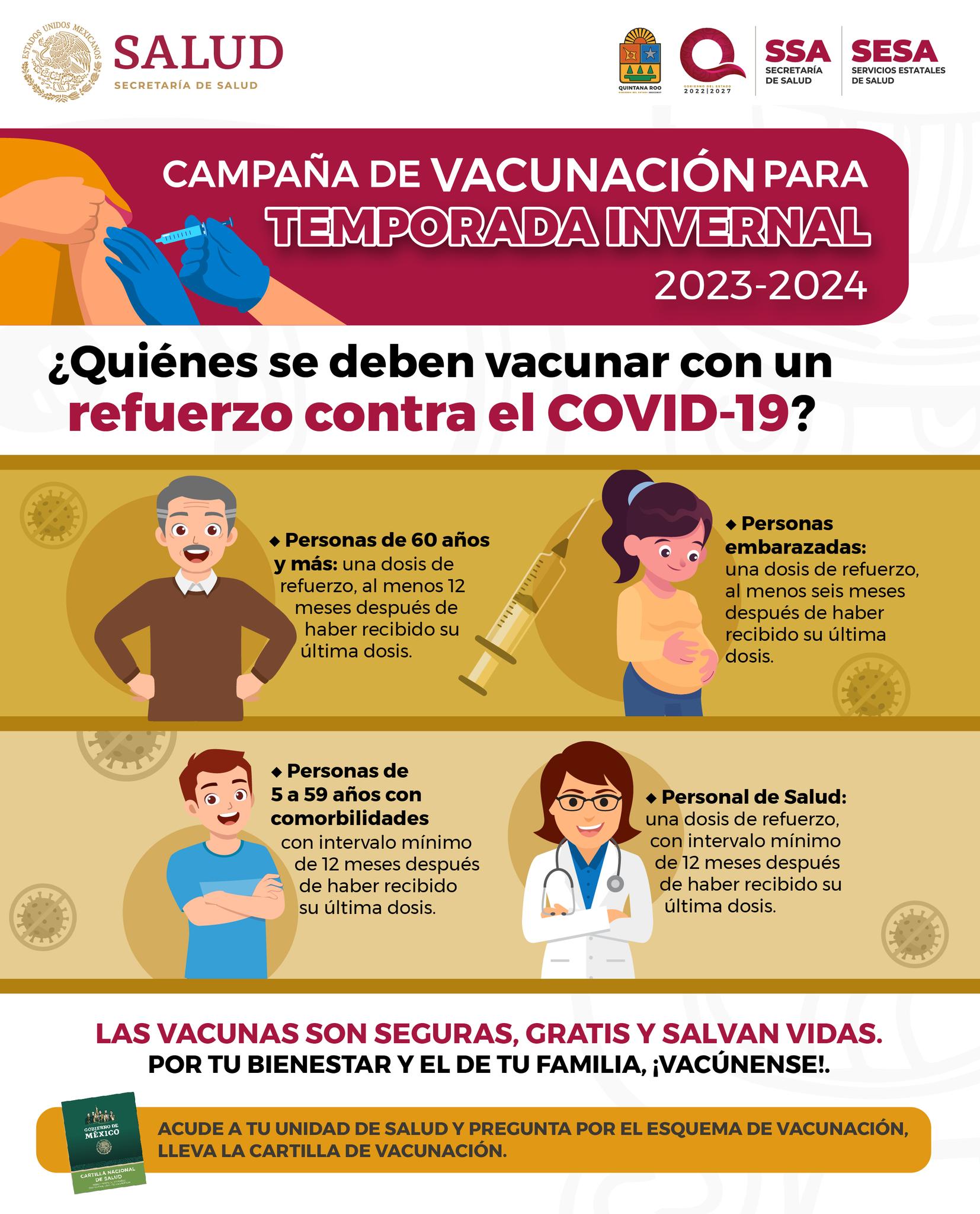 La vacunacón de refuerzo contra el covid es segura, gratuita y salva vidas. Por tu bienestar ¡Vacúnate!