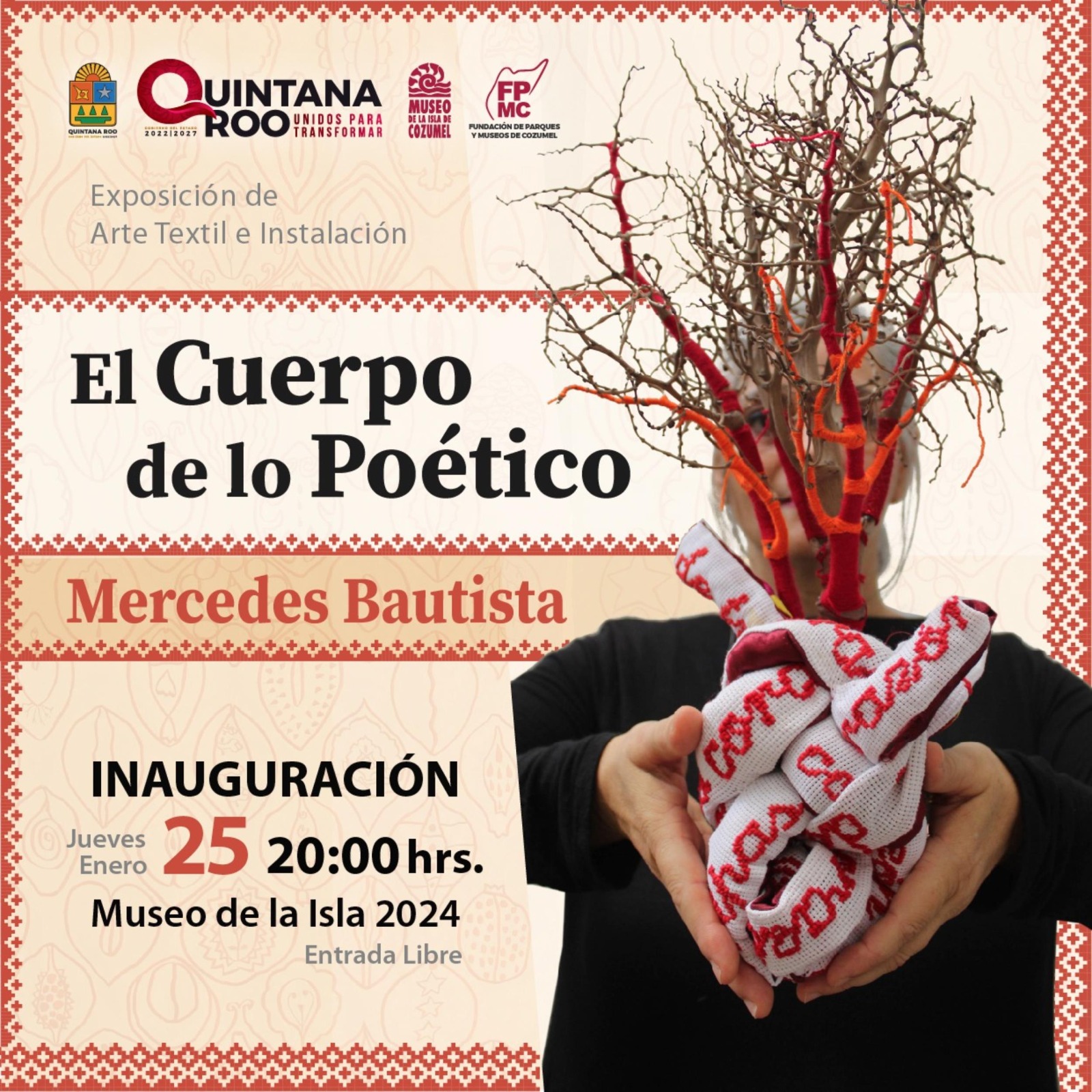 Cozumel.- “El Cuerpo de lo Poético”, es el nombre de la exposición de arte textil e instalación, de la artista internacional Mercedes Bautista, que inaugurará la Fundación de Parques y Museos de Cozumel (FPMC), el próximo jueves en el Museo de la Isla. La entrada es libre para toda la comunidad.