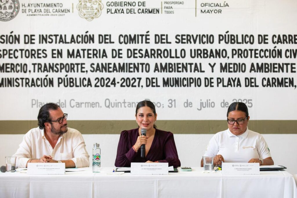 Playa del Carmen, Quintana Roo, 31 de julio de 2025.- “Queremos un Ayuntamiento eficiente, transparente y, lo más importante, cercano a la gente, con servidoras y servidores públicos capacitados, con vocación de servicio y con profundo amor por Playa del Carmen”, expresó la presidenta municipal Estefanía Mercado. al encabezar la toma de protesta e instalación del Comité del Servicio Público de Carrera para Inspectores Municipales, en el Salón Oval del Nuevo Palacio Municipal.