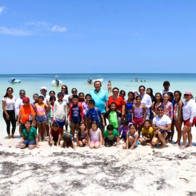 *Una vez más, el presidente municipal Nivardo Mena convive con niños en Holbox, ahora del programa impartido en el DIF