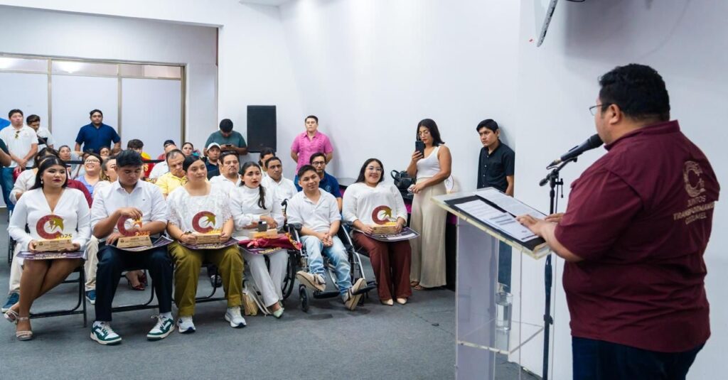 Cozumel, a 15 de agosto de 2025.- Con el objetivo de reconocer y motivar a las y los jóvenes que destacan por su dedicación, esfuerzo y aportaciones en beneficio de la comunidad, el gobierno municipal, que encabeza José Luis Chacón Méndez, a través de la subdirección de Atención a la Juventud, llevó a cabo la entrega del Premio Municipal Cozumel “Mérito a la Juventud 2025” en el salón Municipios.
