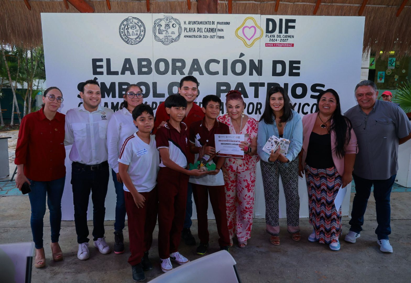 Playa del Carmen, Quintana Roo, 24 de septiembre de 2025.- En un ambiente lleno de creatividad y orgullo nacional, estudiantes de nivel secundaria participaron en un emotivo concurso de elaboración de símbolos patrios con materiales reciclados, realizado en la palapa del DIF Playa del Carmen.
