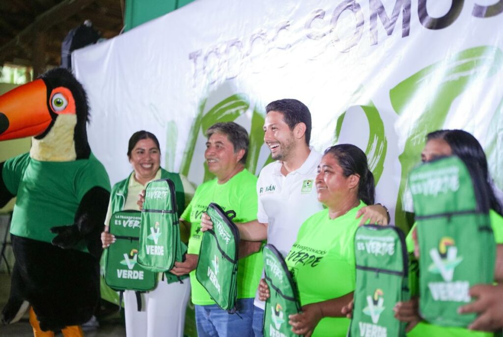 Bacalar, Quintana Roo, 25 de septiembre de 2025.- El dirigente estatal del Partido Verde, Renán Sánchez Tajonar, encabezó en el municipio de Bacalar el arranque de la entrega de kits a la estructura del partido, con la presencia de mujeres y hombres que forman parte del movimiento en el sur del estado.