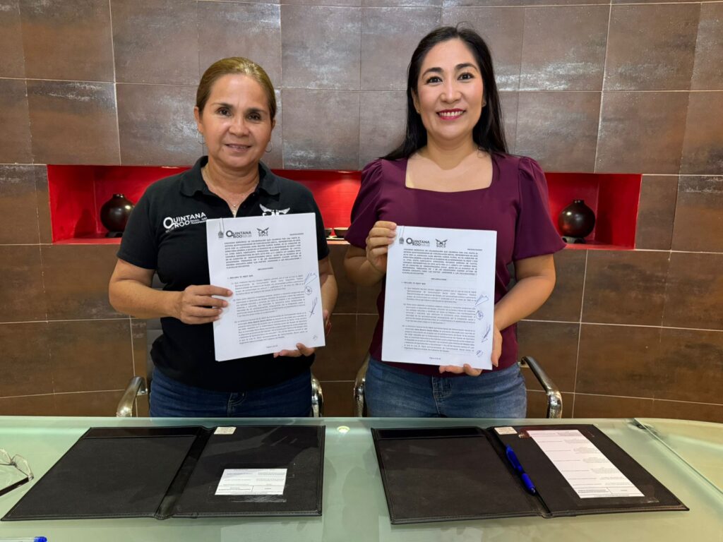 Chetumal.- Con el objetivo de intercambiar y difundir barras de contenido informativo, educación, cultura, deportes, capacitación entre otros, las directoras generales del Sistema Quintanarroense de Comunicación Social Alma Beatriz García Muñoz y de la estación radiofónica “Presumida FM” en el municipio José María Morelos, Lizbeth Gamboa Song, signaron un convenio de colaboración.