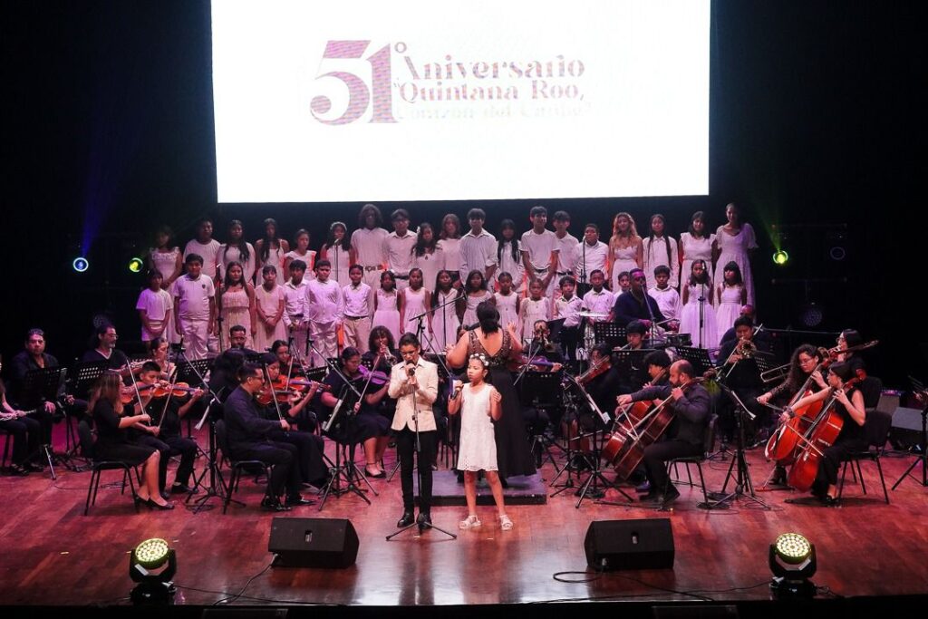 Playa del Carmen, Quintana Roo, 13 de octubre de 2025.– En el marco del 51 aniversario de Quintana Roo, el Instituto Municipal de la Cultura y las Artes organizó el concierto “Corazón del Caribe”, ante una gran concurrencia en el Teatro de la Ciudad.