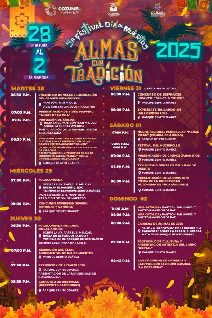 Asimismo, resaltó que “Almas con Tradición”, es un festival que atrae turismo nacional e internacional, donde los visitantes tienen la oportunidad de conocer, disfrutar y ser parte de las tradiciones de Cozumel, en una de las celebraciones más significativas del país, fortaleciendo con ello la proyección cultural y turística de la isla.