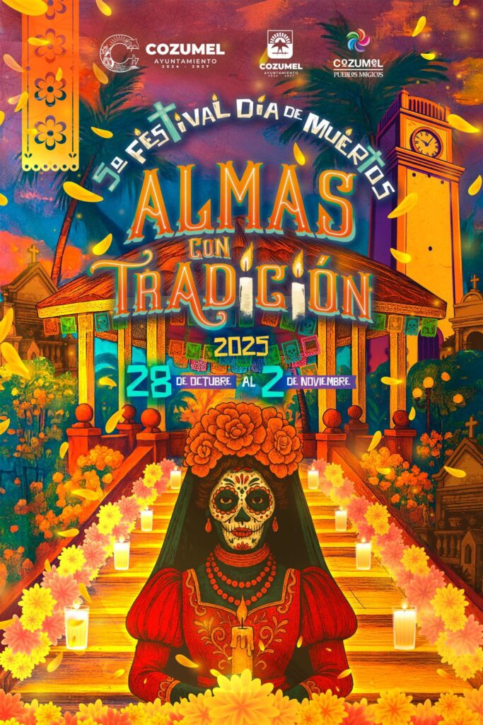 El cartel oficial, develado durante el evento, refleja la conexión entre la vida y la muerte, la luz de las velas que guían el camino de las almas y el colorido que caracteriza a la cultura mexicana y cozumeleña, reconocido por su simbolismo y por transmitir la esencia de “Almas con Tradición”, que continúa posicionándose como un festival emblemático del pueblo mágico.