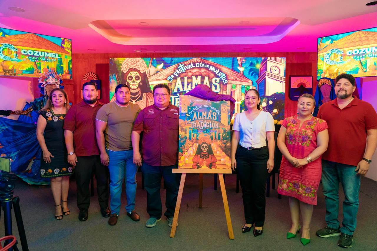 Cozumel, a 15 de octubre de 2025.- En rueda de prensa encabezada por el presidente municipal José Luis Chacón Méndez, se realizó la develación del cartel oficial y la presentación del programa de actividades del 5º Festival del Día de Muertos “Almas con Tradición”, una celebración que año con año reafirma la identidad, el orgullo y la riqueza cultural de la isla. Este evento turístico y cultural se consolida como una de las festividades más representativas del Caribe mexicano, que atrae a visitantes nacionales e internacionales deseosos de vivir la magia de las tradiciones mexicanas en Cozumel.