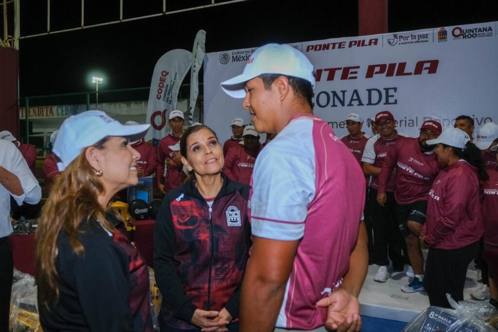 Cancún.- Para fortalecer la estrategia de Construcción de Paz en México y dar continuidad a la Transformación del Deporte en todo el país, la gobernadora Mara Lezama Espinosa entregó material deportivo a las y los 23 embajadores quintanarroenses que realizan actividades del Programa Federal “¡Ponte Pila!”, mismo que encabeza la presidenta de México, la doctora Claudia Sheinbaum Pardo.