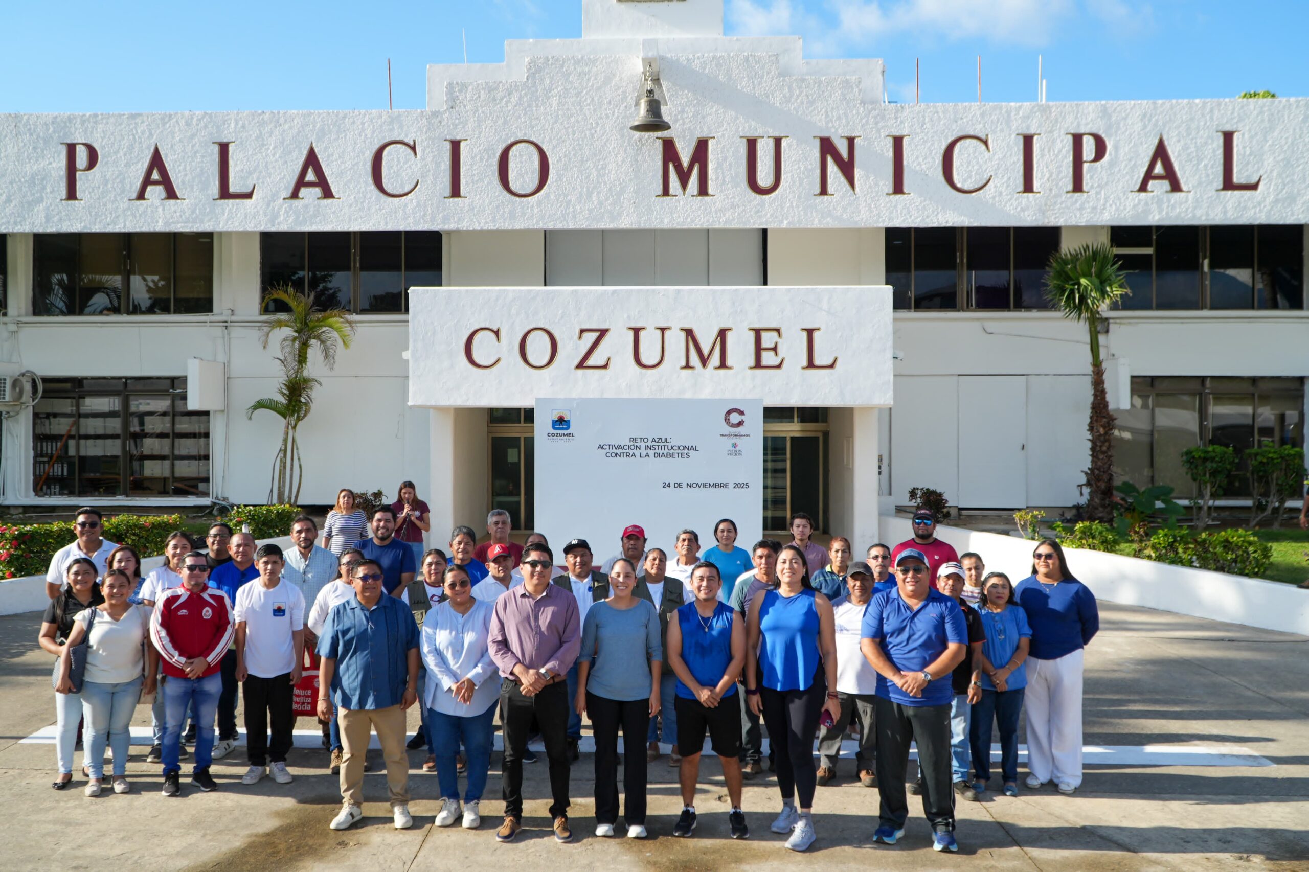 Cozumel, a 24 de noviembre de 2025.- El gobierno municipal que encabeza José Luis Chacón Méndez está comprometido con la salud y el bienestar de la sociedad cozumeleña, así como con el de todas y todos los servidores públicos; por ello, se impulsan acciones que fomentan el deporte, los buenos hábitos y la prevención de enfermedades. Como parte de este compromiso, esta mañana se llevó a cabo la activación institucional “Reto Azul”, enfocada en promover un estilo de vida saludable para combatir la diabetes.