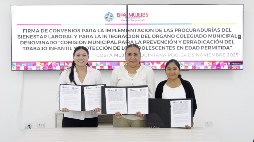 El primer convenio establece la instalación de la Comisión Municipal para la Prevención y Erradicación del Trabajo Infantil (CITI), un mecanismo que ya funciona en todo el estado y que permitirá atender de manera inmediata los casos relacionados con este fenómeno social, además de dar seguimiento a sus causas para garantizar entornos seguros y dignos para la niñez isleña.