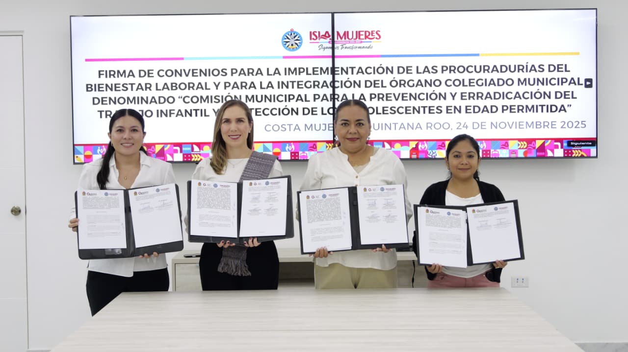 El primer convenio establece la instalación de la Comisión Municipal para la Prevención y Erradicación del Trabajo Infantil (CITI), un mecanismo que ya funciona en todo el estado y que permitirá atender de manera inmediata los casos relacionados con este fenómeno social, además de dar seguimiento a sus causas para garantizar entornos seguros y dignos para la niñez isleña.