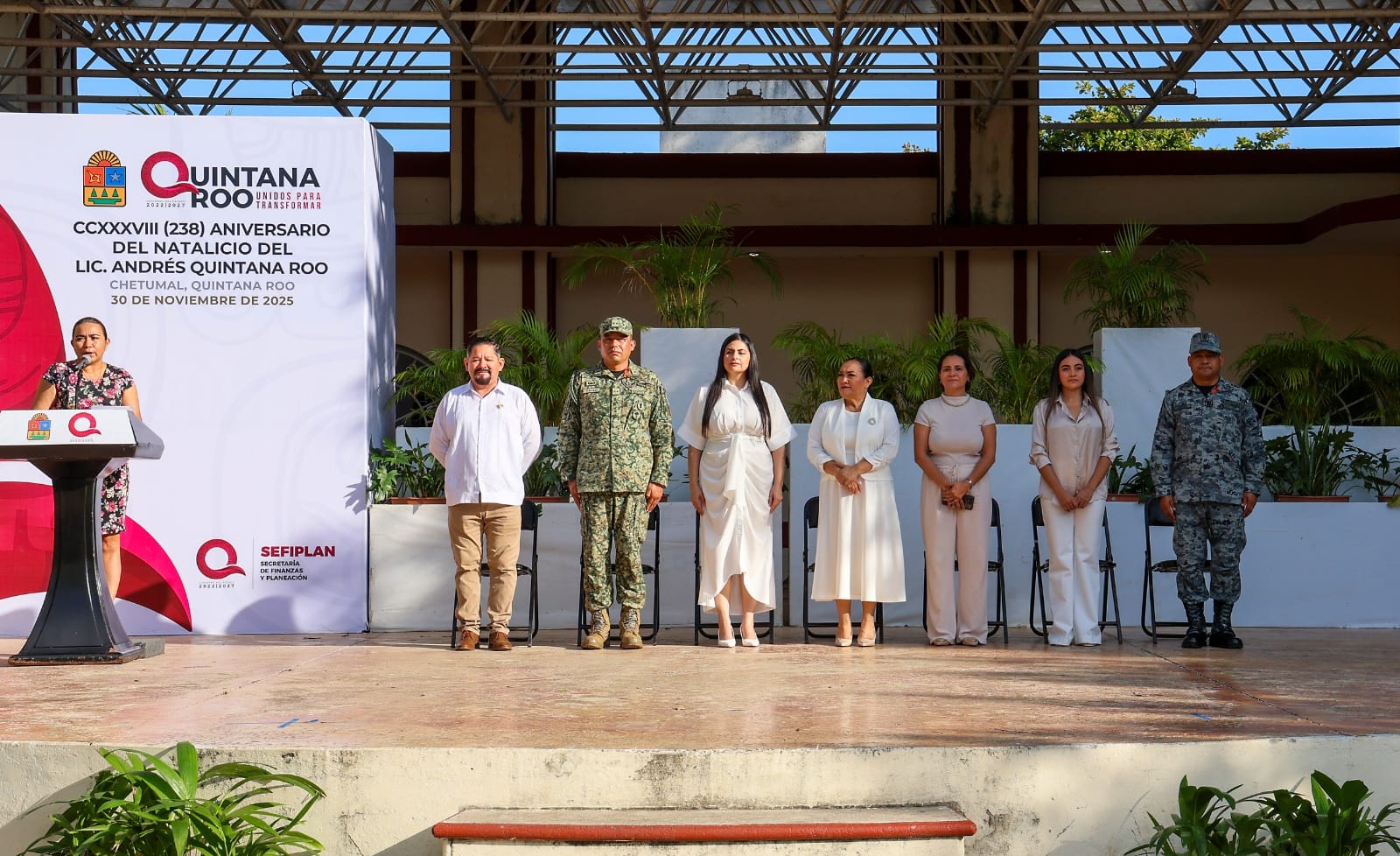 Chetumal.- El Gobierno del Estado conmemoró en Chetumal el 238 aniversario del natalicio de Andrés Quintana Roo, destacado impulsor de la Independencia de México y figura cuyo legado dio nombre a nuestra entidad.