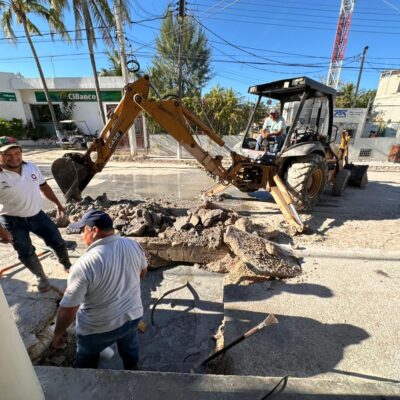 Reparan oportunamente la red de vacío del sistema de drenaje en Holbox. *Trabajan de manera coordinada personal de Saneamiento Ambiental,