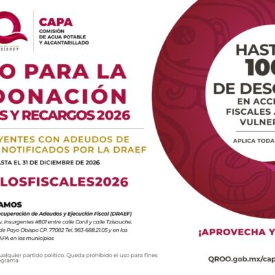 Durante todo 2026, el Gobierno de Quintana Roo continuará con el apoyo para contribuyentes con adeudos en la DRAEF, a través de la CAPA.