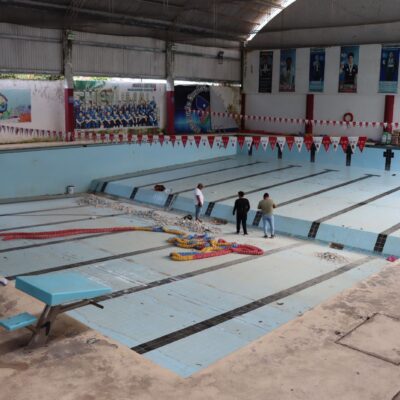 Acompañado de padres de familia, Jacobo Arzate, titular de la CODEQ, supervisó las obras de mantenimiento de la Alberca Semiolímpica