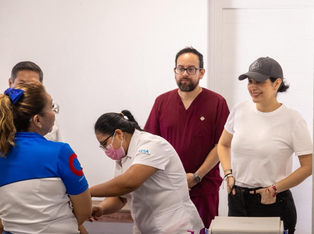 Previamente, la presidenta municipal visitó el Centro de Salud de la localidad en compañía del alcalde y el secretario de Salud, José Antonio Uribe, donde se llevó a cabo una jornada de vacunación contra el sarampión, como parte de las acciones preventivas a favor de la salud pública.