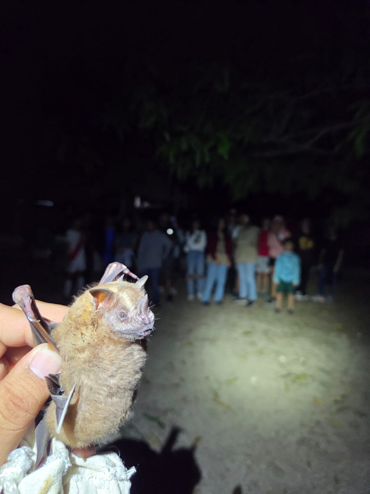 Posteriormente, se realizó un monitoreo acústico en las instalaciones del plantel, actividad en la que alumnos, padres de familia y docentes tuvieron la oportunidad de conocer más sobre estas especies y observar de cerca a los murciélagos frugívoros, fortaleciendo así el aprendizaje práctico y la sensibilización sobre su protección.