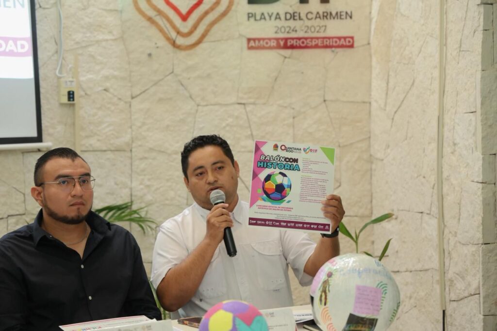 Playa del Carmen, Quintana Roo, jueves 26 de febrero.– El Sistema DIF Playa del Carmen, presidido por Eduardo Asencio, presentó en conferencia de prensa las convocatorias “Creando un Balón por un Gol de Paz”, “Balón con Historia” y el “Concurso Estatal de Balones Decorados”, iniciativas que promueven la creatividad, la sana convivencia y la unión familiar en el marco del Mundial de Futbol.