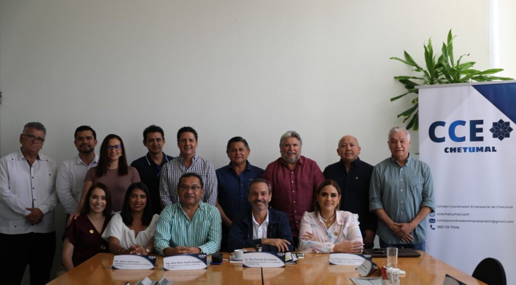 Chetumal.- El secretario de Desarrollo Económico, Paul Carrillo de Cáceres, asistió a un encuentro con integrantes del Consejo Coordinador Empresarial (CCE) en Chetumal, encabezado por Wilma Contreras Canto, presidenta del organismo, con el objetivo de fortalecer la vinculación institucional entre el Gobierno del Estado y el sector empresarial.