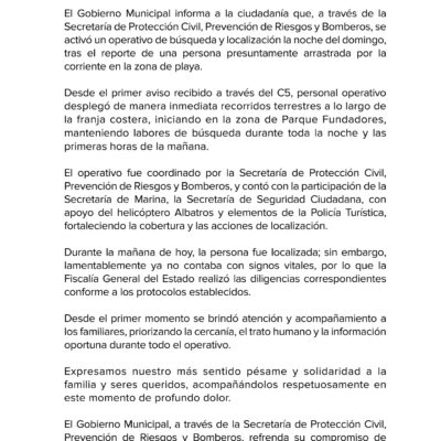 A las y los Playenses: El Gobierno Municipal informa a la ciudadanía que, a través de la Secretaría de Protección