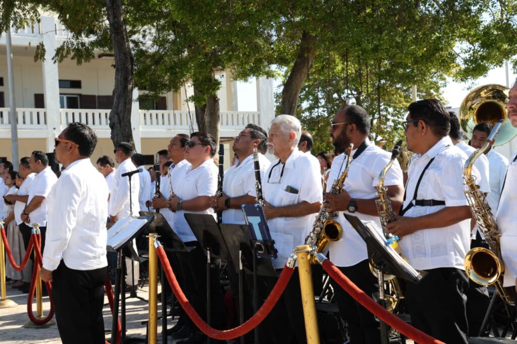 La ceremonia contó con la participación de la Banda de Música y Coro del Estado, que interpretaron la pieza “La Bikina”, además de entonar los himnos a Quintana Roo y Nacional Mexicano.