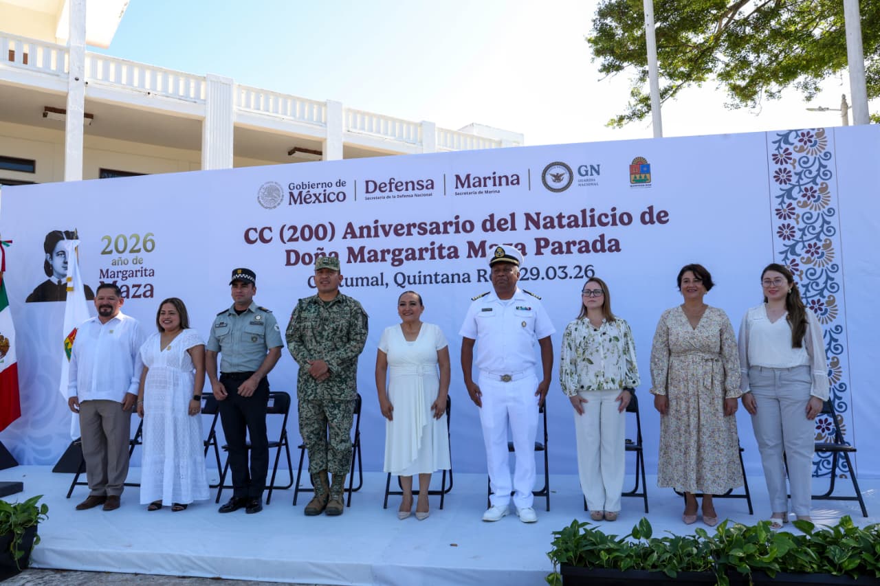 Chetumal.- Autoridades de los tres órdenes de gobierno, junto con ciudadanía en general, conmemoraron en la capital del estado el 200 aniversario del natalicio de Margarita Maza de Juárez, figura clave en la historia de México por su papel en la defensa de la República y su contribución a la vida política y social del país.