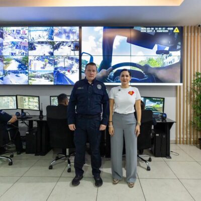 Estefanía Mercado supervisa en C4 uso de bodycams para fortalecer la vigilancia policial en Playa del Carmen