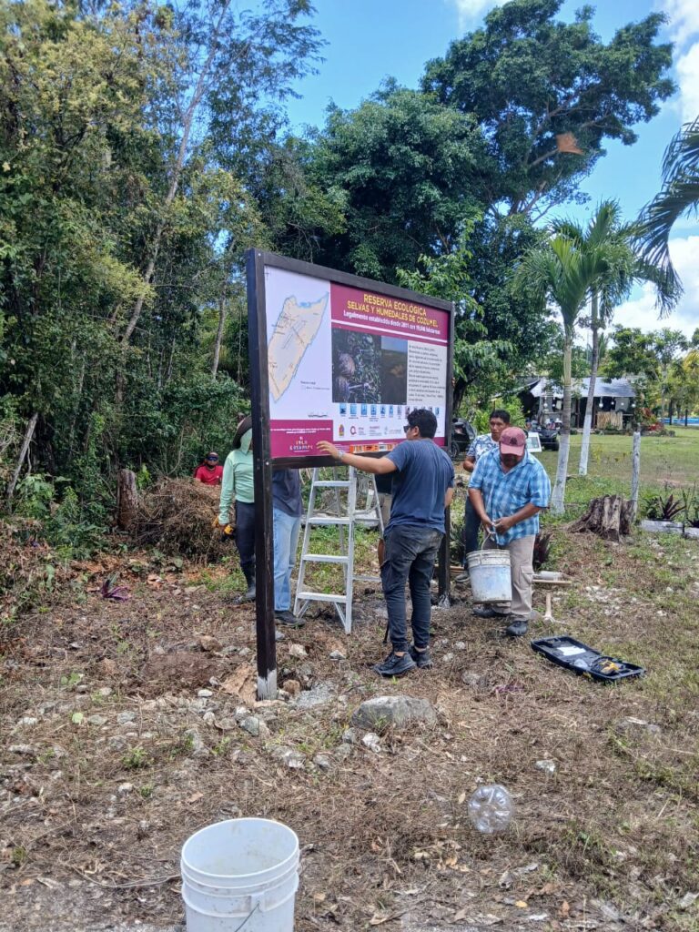 Las señaléticas fueron instaladas en puntos estratégicos de acceso dentro del área natural protegida, fortaleciendo así las acciones de educación ambiental y vigilancia para el cuidado de este valioso patrimonio natural de Cozumel.