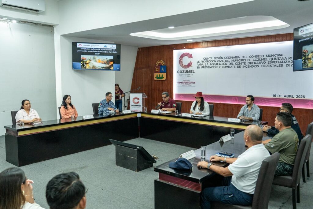Cozumel, a 16 de abril de 2026.- El gobierno municipal que encabeza José Luis Chacón Méndez instaló el Comité Operativo Especializado en prevención y combate de incendios forestales 2026, en el marco de la Quinta Sesión Ordinaria del Consejo Municipal de Protección Civil del Municipio de Cozumel, Quintana Roo, en la que además se llevó a cabo la toma de protesta de las y los nuevos integrantes, fortaleciendo así la coordinación institucional para salvaguardar a la población y el entorno natural de la isla.