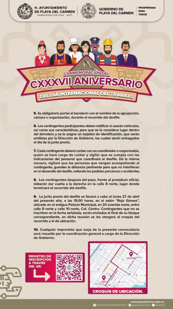 Con esta convocatoria, el Gobierno Municipal reafirma su compromiso de promover la participación ciudadana y reconocer la importancia de las y los trabajadores en el desarrollo y crecimiento de Playa del Carmen.
