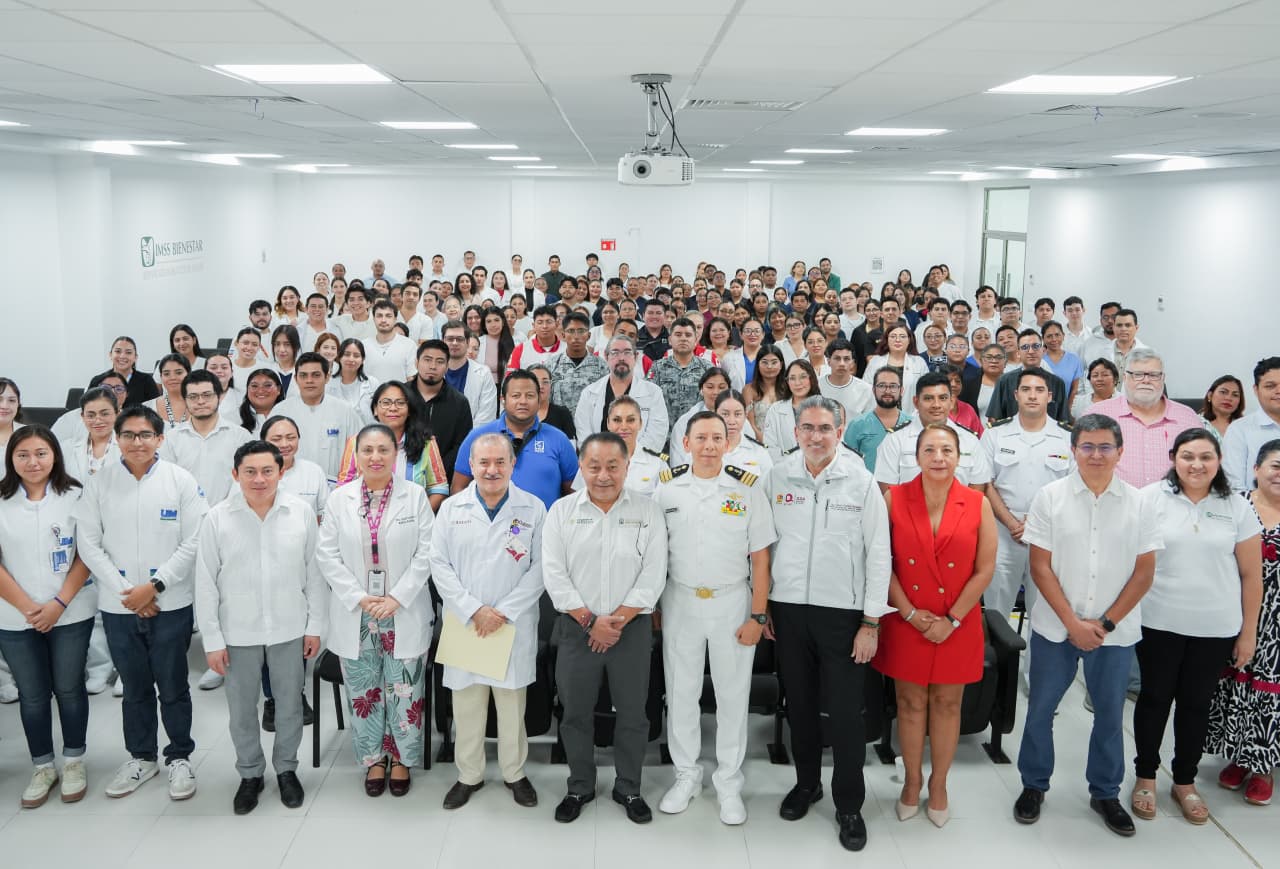 A este evento asistieron el doctor Moisés Toledo Pensamiento, coordinador estatal del IMSS Bienestar; el Dr. Miguel Ángel García Albarán, director del Hospital General “Jesús Kumate Rodríguez”; Luis Alberto Tun, subsecretario de Educación; así como personal de la Secretaría de Marina, Guardia Nacional, Cruz Roja, IMSS Bienestar, IMSS, ISSSTE y estudiantes de medicina de diversas universidades