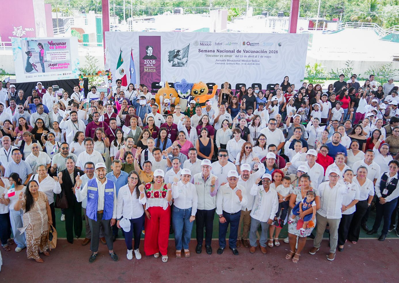 Chetumal.– Con el objetivo de fortalecer la protección de la salud en la región fronteriza, el secretario de Salud estatal, Flavio Carlos Rosado, en representación de la gobernadora Mara Lezama, encabezó el inicio de la Jornada Binacional de Vacunación México–Belice, bajo el lema “Vacunar es amar”, en el marco de la Semana Nacional de Vacunación 2026 y de la Semana de Vacunación en las Américas.