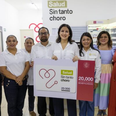 Estefanía Mercado entrega la credencial de afiliación número 20 mil del programa “Salud Sin Tanto Choro” en Playa del Carmen